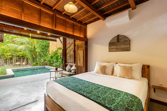 Villa Kayu is a two-level, two-bedroom villa crafted entirely from sustainable local wood, with exquisite carvings that highlight the beauty of nature. Perfect for groups of friends or two couples, the villa sits on 250 m² with a large pool, and spacious garden. Enjoy mesmerizing sunsets from the balcony, accompanied by the soothing sounds of nature, making Villa Kayu an ideal haven for peace and rejuvenation.